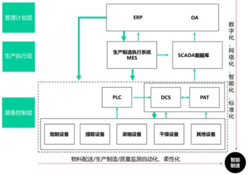 企业发展智能制造的内在动力在于产品品质可控,侧重从生产数字化建设起步,基于品控需求从产品末端控制向全流程控制转变。因此其智能工厂建设模式为: