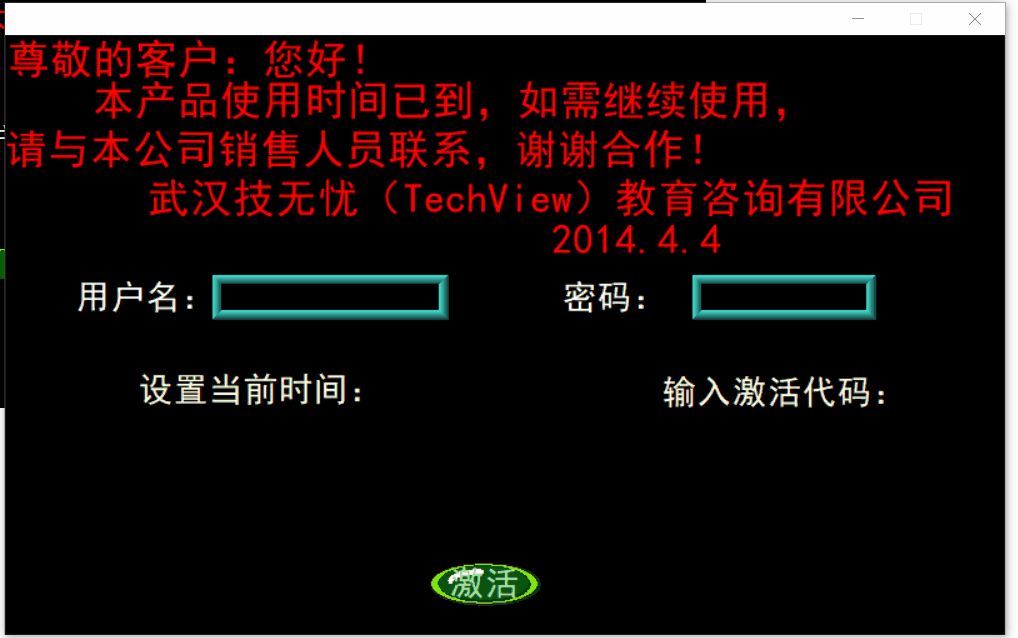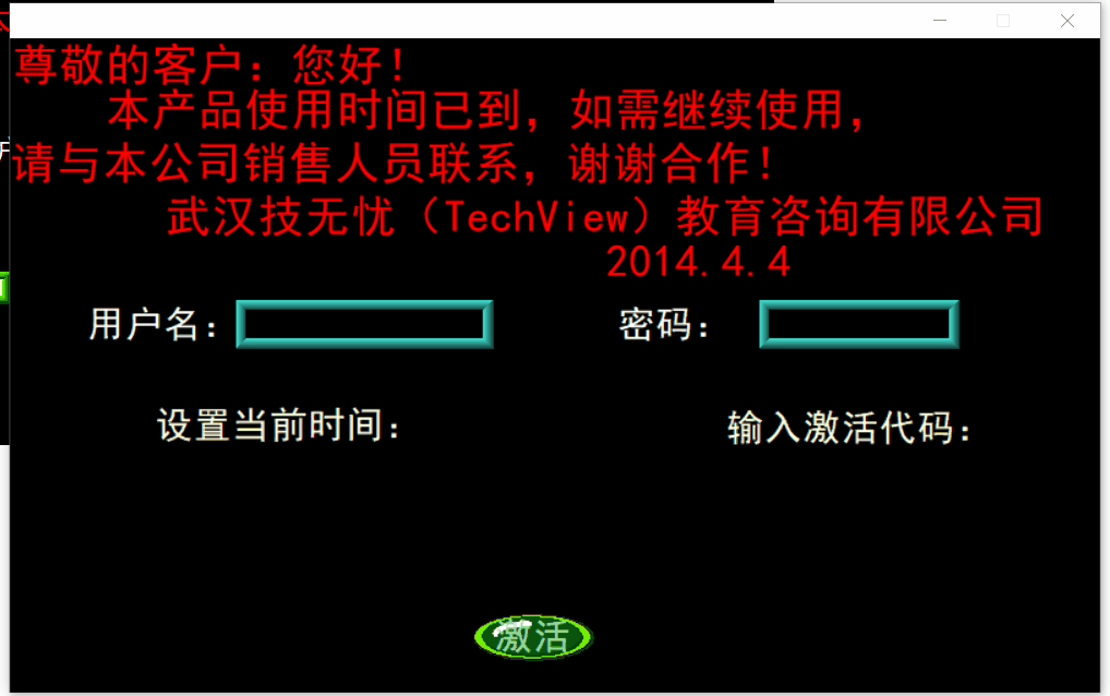 如上面的动画所示:进入菜单界面之后,画面突然跳到激活界面,这时要求输入用户名和密码,不然点击激活无法转到运行界面。