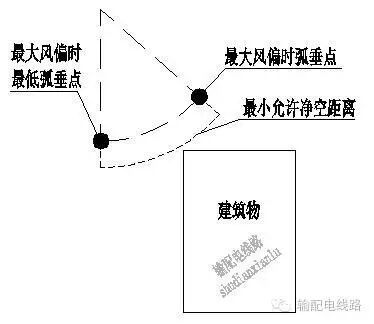 边导线风偏示意图3. 边导线与建筑物之间的水平距离