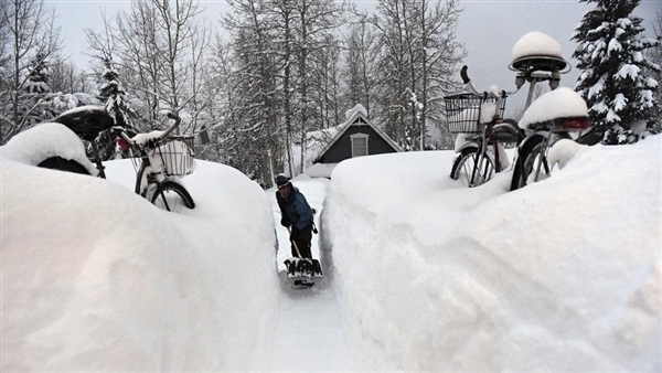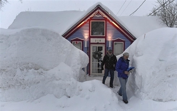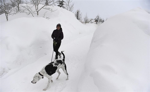 连续数日的狂封大雪令每一户门前都积攒了一人高的雪墙,雪停之后的第一件事就是“挖隧道”。