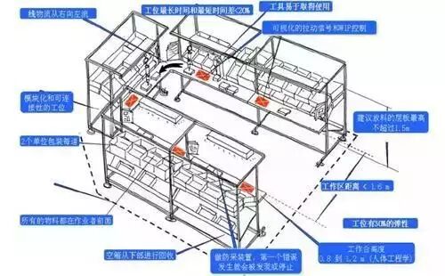 一、 精益生产线概念 精益生产线又称精益cell线,柔性生产线,3.0细胞线,是利用杜绝浪费和无间断的作业流程而非分批和排队等候的一种生产方式。 精益生产线是衍生自丰田生产方式的管理哲学。精益最著名的是把重点放在减少源自丰田的七种浪费,借此提升整体顾客价值,不过,对于哪个是最佳达到这个目标的方法,却没有定论。 丰田汽车公司从一家小公司,稳步增长成为世界最大的汽车制造商,正是把注意力集中于如何达到这个目标。 二、 精益生产线转换的五个步骤 1.单件流 2.标准化作业 3.物料移动到使用点 4.看板拉动 5.每个小时产出记分卡 三、 精益生产线设计原则 一条精益生产线理应从客户的具体需求出发,结合精益的思路和方法设计出精益工位和精益生产线。从始至终明确目的是将生产线内的浪费消除或推向外部,使生产线的效率最大化。精益生产线会使得浪费更少、弹性更大、更加平衡、产品流更加简化。 精益生产线设计从以下9个步骤实施进行: 1.需求预测分析 2.节拍时间计算 3.装配顺序定义 4.差异化分析 5.作业测定 6.制程构建 7.物料分析 8.工位设计 9.线体布局
