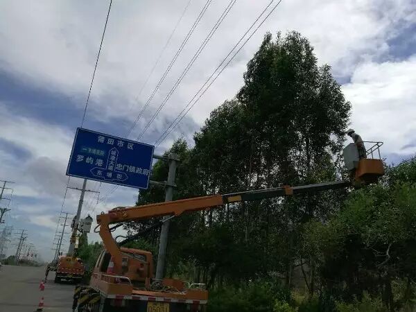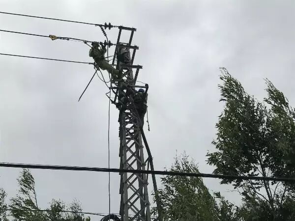 7月30日,莆田秀屿区笏石镇笏枫路顶社路口一基线杆因台风天气发生故障,莆田供电公司抢修人员正在抓紧抢修,争取尽快恢复供电。