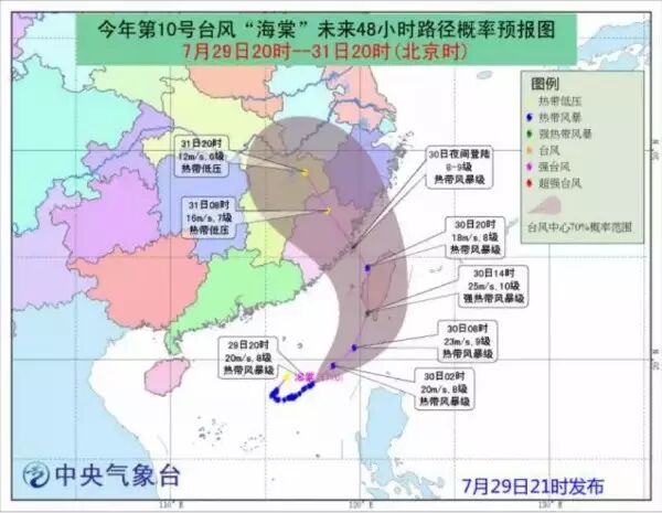据气象台预报,7月30日,福建全省有暴雨到大暴雨,宁德、福州、莆田和泉州四市的局部有特大暴雨。31日,福建省有暴雨,南平和三明两市的东部、龙岩市有大暴雨。
