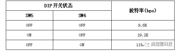 IM260和IM261的SW5和SW6 DIP开关用于设置波特率,如下表: