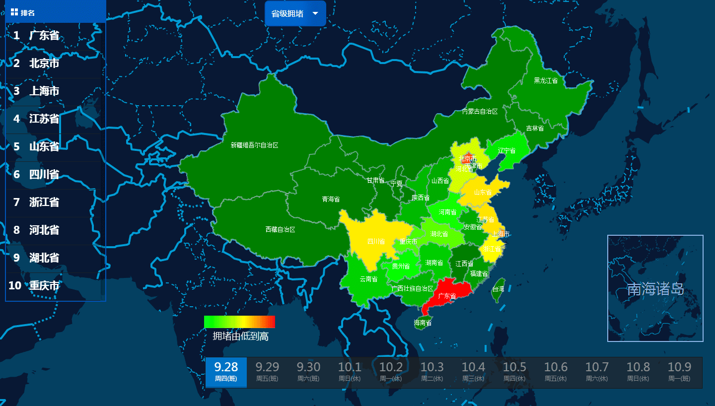 ▲全国公路网拥堵分布(省级)/来自交通运输部路网中心