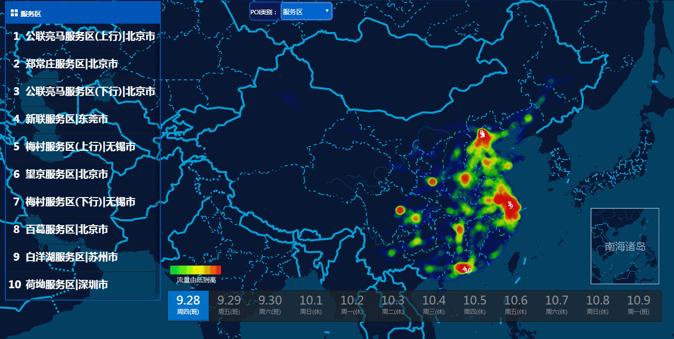 返程高峰:预计在10月6日和10月7日15时到20时。
