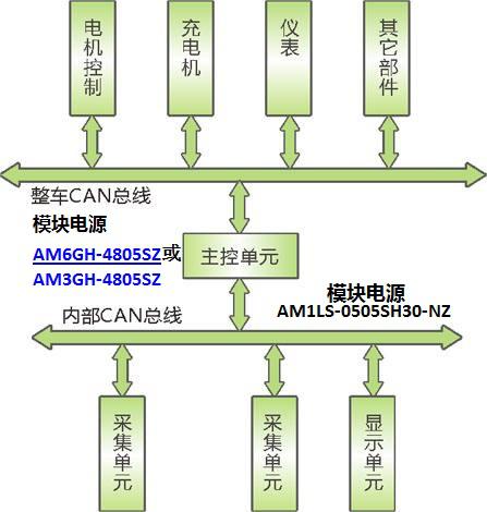 如图所示,锂电池和主控单元之间可以选用aimtec模块电源AM6GH-4805SZ,或者AM3GH-4805SZ,超宽输入范围18-75VDC,可以满足24V和48V等不同电池组的供电电压,给主控单元提供稳定的工作电压,不受电池在充电和放电过程中的电压波动影响。同时使电池和主控单元隔离,提高主控单元可靠性。在主控单元和采集单元之间,通过光耦和电源模块AM1LS-0505SH30-NZ隔离。由于模块电源属于模块化设计,体积小,可靠性好,高温可达125°C,在BMS系统中被广泛应用。