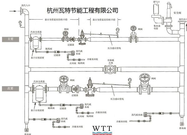 瓦特这种结构设计一方面双阀芯的结构消除了上游压力的影响;另外一方面下游反馈压力与设定值之间的差异经主隔膜放大,使得减压阀反应非常灵敏,从而保证了下游蒸汽压力的稳定。