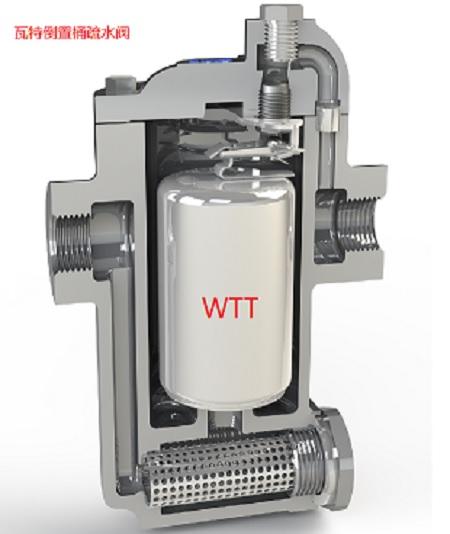 瓦特倒置桶疏水阀利用了没有固定支点的杠杆原理,这种机构不会磨损,或卡阻。杠杆的存在使得倒置桶的动作更加灵敏,也使疏水阀能在更高压差下打开。同时杠杠的的利用,可以平衡更大阀座产生的不平衡力,从而增大疏水阀的流通能力。
