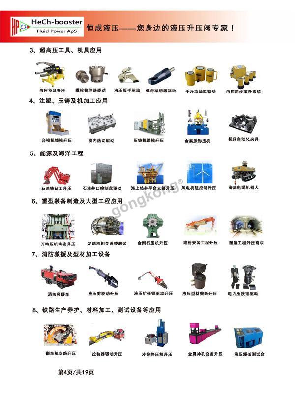1、工程机械设备 2、矿山机械设备 3、超高压工具、机具应用 4、注塑、压铸及加工应用 5、能源及海洋工程 6、重形装备制造及大型工程应用 7、消防救援及型材加工设备 8、铁路生产养护、材料加工、测试设备等应用.