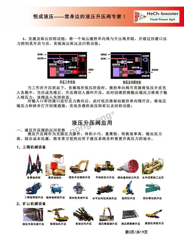 液压增压器器作为无源压力器件、体积小、重量轻、转换效率高、输出压力高、综合成本低廉,能非常方便的应用于液压系统各种需要升高压力场合.