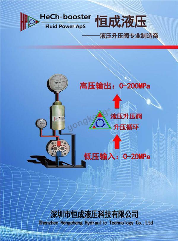 深圳市恒成液压科技有限公司,成立于2017年7月,从事液压增压技术研发及市场。公司产品主攻液压增压,现有多型号集成式液压增压器、自动化增压缸产品,并且对液压油、水、乳化液等多种介质相关产品有深入的研究,广泛服务于工程机械、船舶行业、风电新能源行业、航空工业、石油工业、工具行业、以及注塑、锻压设备等行业中的设备。围绕液压增压器产品,博世特公司还提供专的液压油站系统,为不同行业的应用开发相应的专用液压泵站。