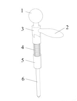 假设现在有一款下图所示医用手钻,有第一手柄1、第二手柄2、棘轮传动部3、弹簧4、弹簧座5、钻头6,往复旋转第二手柄2,通过棘轮传动部3使钻头6单向钻进。现在,对这个手钻进行专利挖掘。