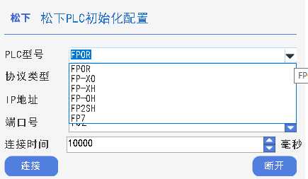 通过平台资源管理器内的松下初始化算子,用户可对松下 PLC 进行初始化工作,包括协议选择、松下PLC型号(支持FP0R、FP-X0、FP-XH、FP-0H、FP2SH和FP7PLC使用)、参数设置等,并输出松下 PLC 对象。 在上述的描述中已经看到,平台也为松下PLC寄存器读写实现做了两个算子,通过松下寄存器读算子和松下寄存器写算子实现与松下PLC 的稳定通讯和数据交互。