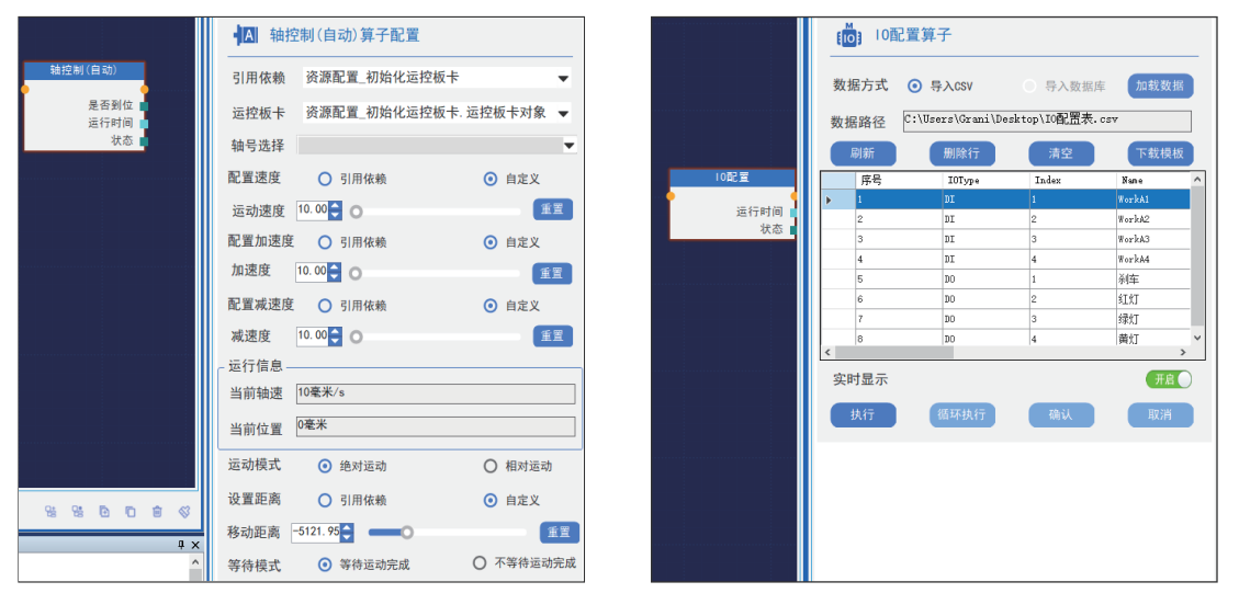 轴复位、读写io控制、点位运动、两轴插补、三轴插补、轴状态读取等算子和配套的控件,帮助用户快速实现运动控制项目,让运动控制软件实现更简单更高效。工具通过海量项目验证,具有高精度、高速度、高实时性和高可靠性。可实现状态机 控制模式、事件-响应处理机制、高性能并行处理、顺序结构、队列消息模式、主从模式编程。