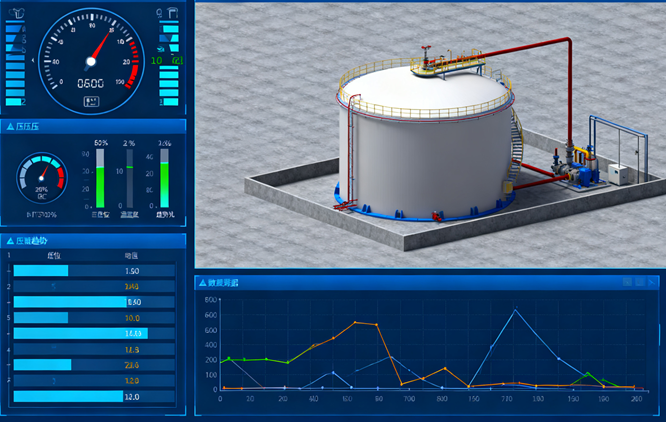 自动控制:根据预设的规则,系统可以自动控制相关设备的运行,如当液位低于下限值时,自动启动加油泵;当温度高于上限值时,自动启动冷却设备等。