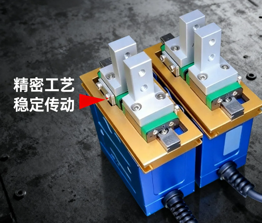 高精度驱动结构:采用精密丝杆或者齿轮/齿条+滚柱导轨设计,使夹指运动平稳、重复精度高;