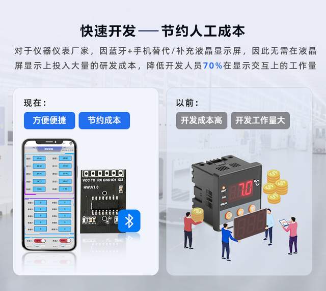 河北某水质仪表厂,之前每台设备配触摸显示屏,成本高,客户还嫌操作麻烦。换蓝蜂蓝牙方案后,单台成本直接砍半,研发周期从 15 天缩到 2 天,去年在价格战里逆势涨单 30%—— 同行卖 1200 元亏本,他卖 1000 元还赚 200。