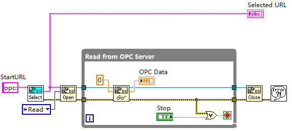 类似功能对比:与 OPC 专门的读取函数相比,DataSocket Read 更通用,可用于多种数据源(不仅限于 OPC)的数据读取。