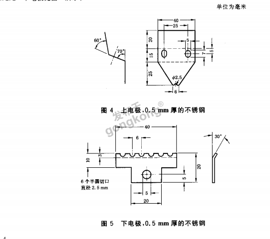 3. 电极规格:厚度为 0.5mm,其它尺寸按照标准要求制作,上、下电极之间的间距为 50±0.5mm;