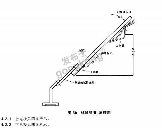 注:试验条件设计成使效应加速产生,但并没有模拟在使用中所遇到的全部情况。对下列条款所述的试验设备而言,电痕在下电极起始。可采用两种判断标准确定试验终点。判断标准A: