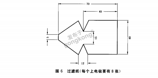 4.3.2用大致尺寸如图6所示的八层滤纸夹在上电极与试样之间,储积污染液。