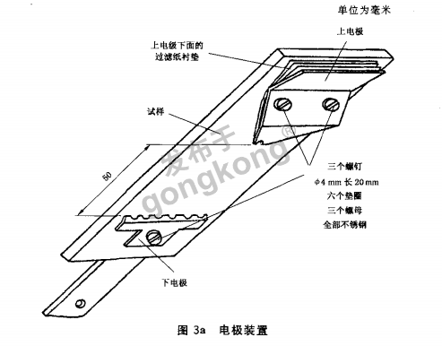 4.2电极所有的电极、固紧装置以及与电极相连的装配件,如螺钉,应该用不锈钢做成。电极装置如图3a所示。