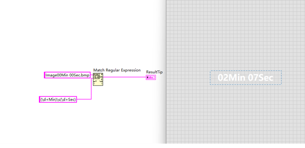 利用 LabVIEW 的 “Match Regular Expression” 函数,通过构造精准的正则表达式,匹配并提取字符串中 “数字 + Min 数字 + Sec” 格式的内容,是最高效且灵活的方式,具体实现如下: