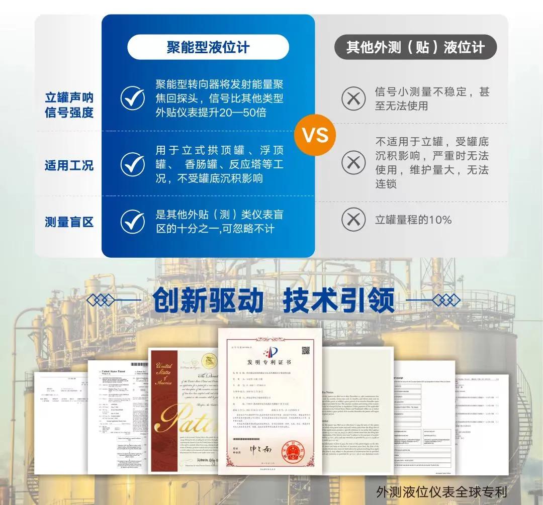 定华电子专门研发出一款全新产品——聚能型外测液位计,无惧复杂工况,立罐适用,信号提升20-50倍,“零盲区”,更稳定可靠。