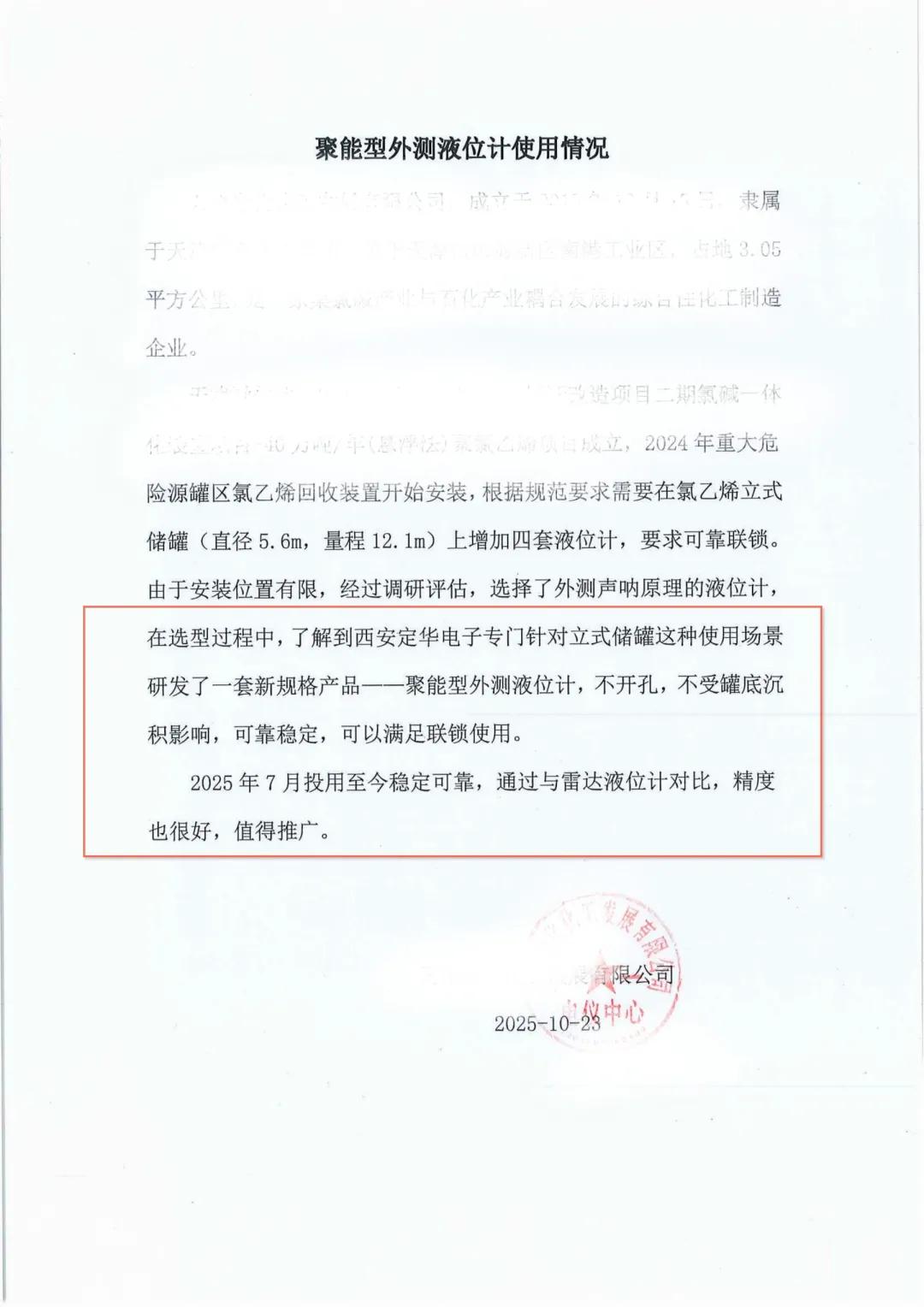 自投用以来,聚能型外测液位计稳定可靠。通过与企业原有进口雷达液位计的对比观测,其测量数据精准,一致性高,完全满足安全联锁系统对测量精度的苛刻要求,具备显著的推广应用价值。