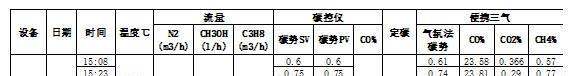 5)便携三气测量CO值在31.5%左右波动,与理论甲醇裂解气氛的CO值相当,说是甲醇裂解状况良好。