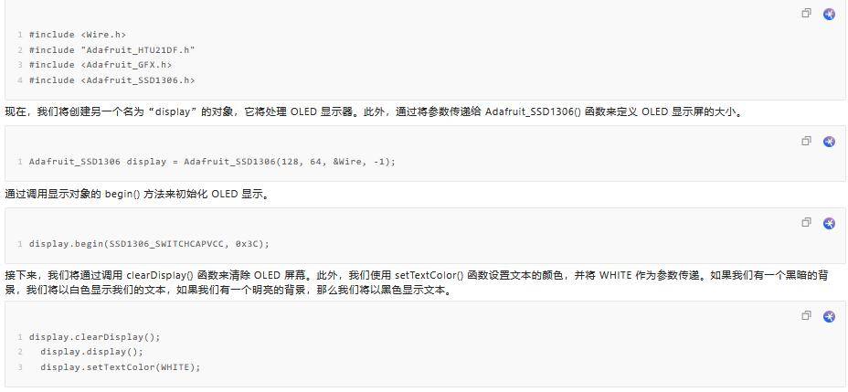我们将串口监视器上的温湿度值一一显示在OLED上。此代码块在 OLED 上显示 HTU21D 传感器值并每半秒更新一次值。