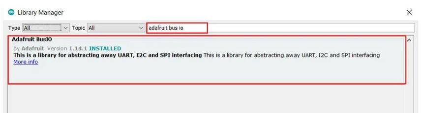 在搜索栏中输入 Adafruit BusIO 并安装它。