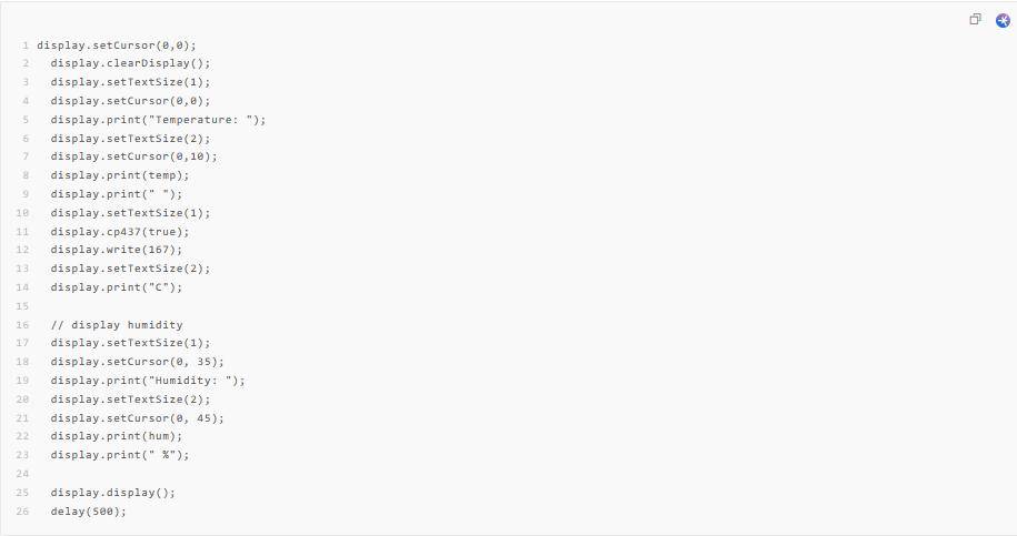 代码的最大部分与我们之前讨论的相同,除了 OLED 显示部分。因此,我们这里只对OLED显示部分进行说明。