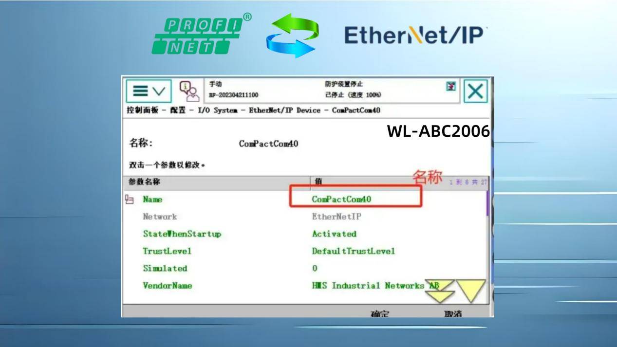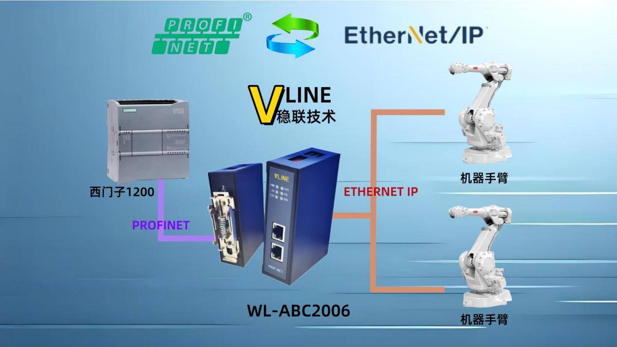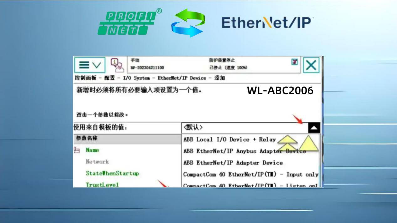 本案例呈现的是ABB机器人以Ethernet/IP主站的身份,与作为Ethernet从站的网关建立连接,而后网关将数据转换为Profinet协议,以供西门子PLC进行读写操作。