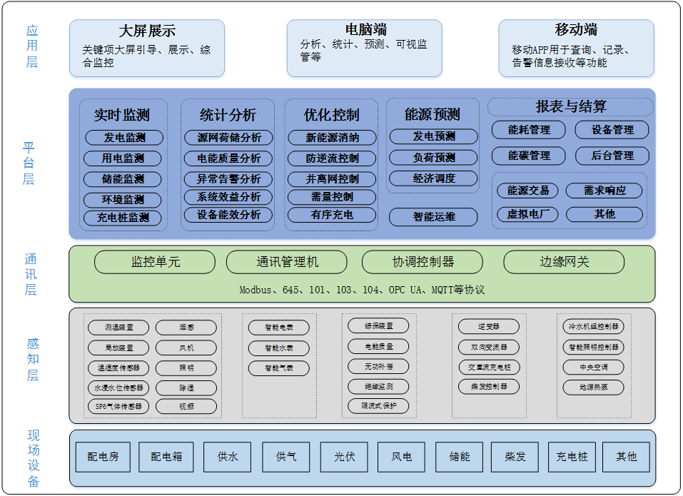 注:支持第三方平台与子系统的接入,如视频、充电桩、空调、相变储能、电能路由器等。