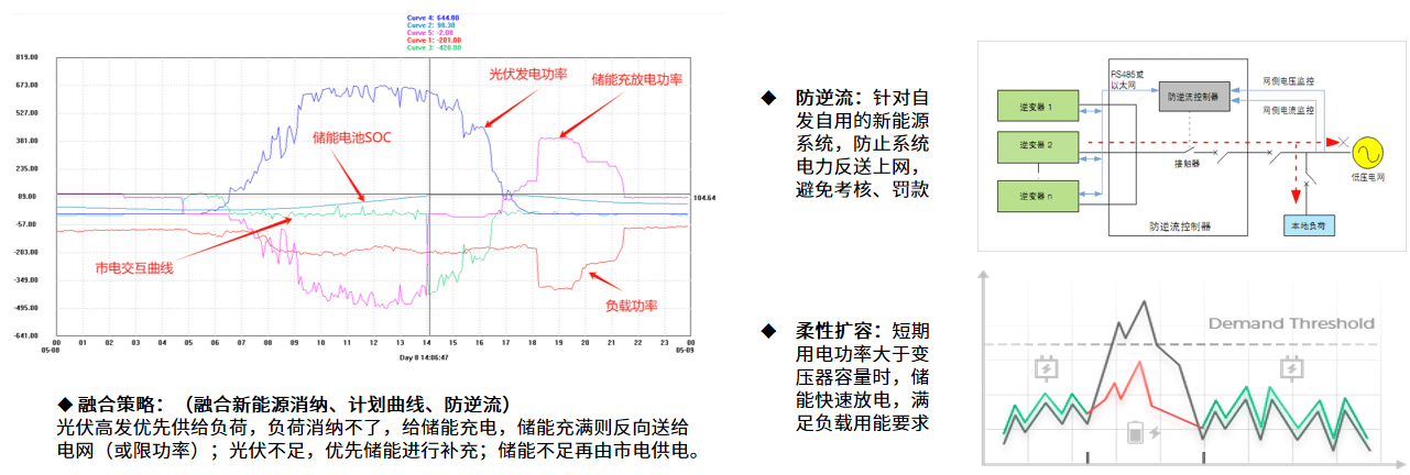 储能--防逆流、峰谷套利、需量控制、柔性扩容;