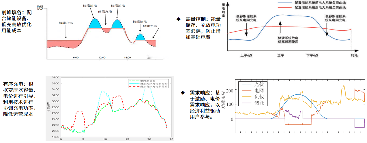 源网荷储充--防逆流、新能源消纳、需量控制、有序充电、负荷柔性控制。
