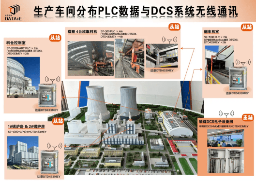 在河北某热电厂项目中,通过10台分散的西门子S7-300/1500/1200及S7-200 SMART PLC部署无线组网方案。通过DT500L协议转换器与DTD433MEY终端,将不同协议统一为Modbus RTU,与和利时DCS系统无线组网,实现燃煤作业的远程实时监控与设备无线联锁控制,降低电缆铺设成本。