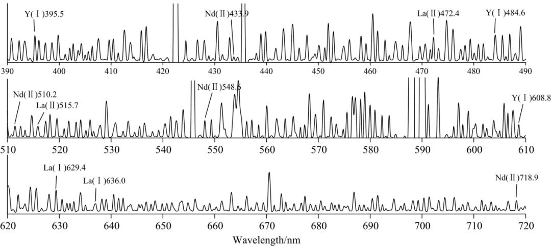 样品浸出液具有重要 REY 发射线的 LIBS 光谱