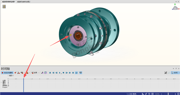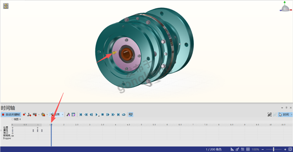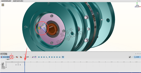 随后将时间轴放置在1s的位置,点击其中一个螺栓,设置关键帧后点击效果,设置热点效果。热点效果下的模型会进行闪烁一次。