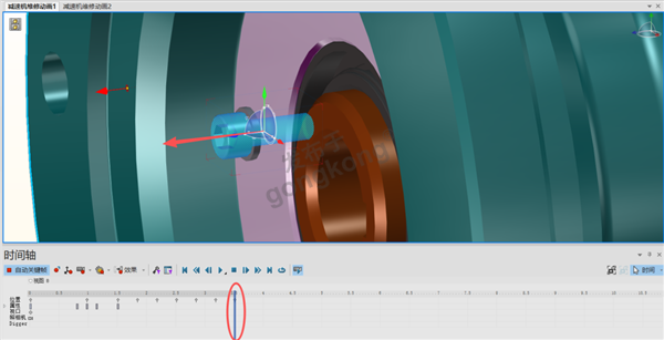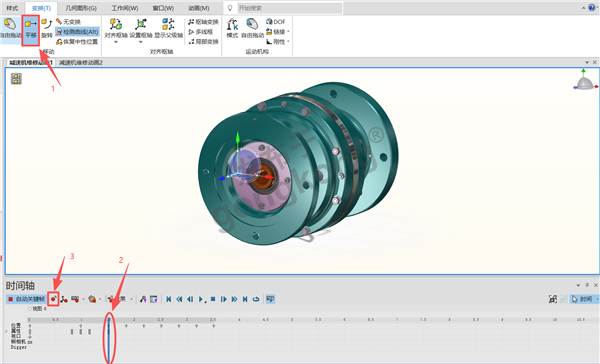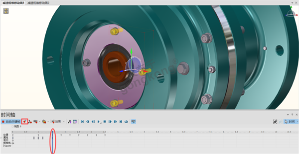 6. 选择另外三个螺栓,将其时间轴放置在螺栓开始移位的一秒并设置关键帧,随后拖入螺栓组,退出装配体模式,如此便完成了所有螺栓的位移设置。