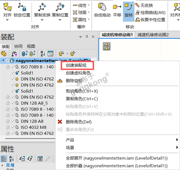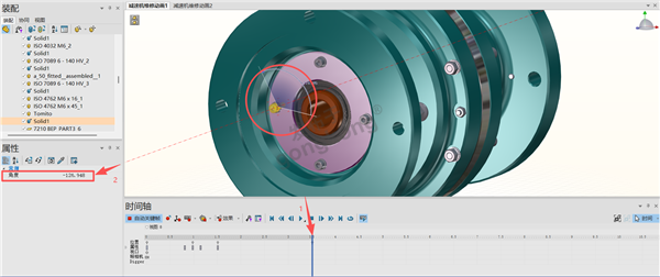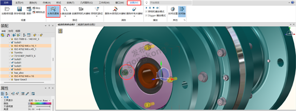 本次使用Composer制作螺栓拧出的动画,使用模型减速器进行制作,从设置其关键帧开始,关键帧包括属性关键帧和位置关键帧,在将其螺栓零件旋转后,再使用装配体模式进行位移,随后再将另外的螺栓进行复刻和拖入装配组即可。因为在批量进行螺栓时,无法完成旋转的同时进行位移,装配体模式下的组使用的是装配体的统一的唯一,而从角色复刻,则是在复刻的角色上复制已有的操作。所以可以每个螺栓可以独立且同时的旋出。使用制作动画的方法制作拆卸装配动画,既不需要去录制视频,也不需要操作人员一个一个的拧出螺栓,更不用担心在后期进行更改时需要推到重来。即节约了人力物力,也节约了时间,更重要的是使用动画的方式让我们的拆卸装配过程更加的清晰明了。