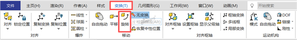 3. 在上方点击变换选择其中的旋转,点击螺栓后,可以看到旋转方向,将时间轴放置在1.5s,设置其关键帧。