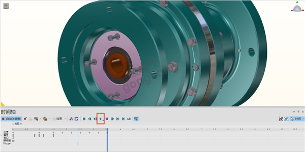 7.再次选择另外三个螺栓,在上方选择动画,点击“从角色复刻”,即可完成所以螺栓的旋转设置,最后播放视频检验效果。