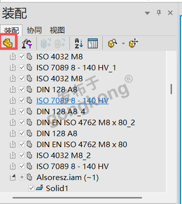 5.将装配下方的零件标识点亮,进入装配体模式。