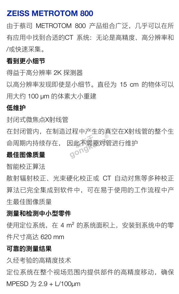 ZEISS METROTOM系列以超高精度著称,其分辨率可达微米级别,能够精确测量微小零部件的内部尺寸和缺陷。该系列采用独特的X射线源和探测器技术,结合蔡司先进的图像处理算法,实现了卓越的检测精度和稳定性。
