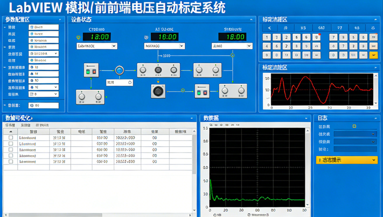 基于 LabVIEW 的图形化编程优势、仪器控制能力和数据处理特性,设计一套模拟前端电压自动标定系统,可实现仪器设备的统一程控、多温区多通道的自动标定、数据的实时采集与归档,从根本上解决传统标定的痛点,同时兼顾系统的扩展性与复用性,适配不同型号模拟前端的标定需求。