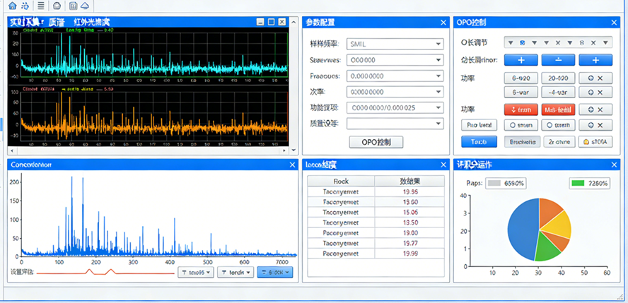 OPO 系统同步控制:LabVIEW 中搭建 TCP 通信模块,将用户设置的扫描模式、波长范围、扫描速度等控制指令,通过 TCP 协议传输至数据采集卡,再由采集卡与 OPO 系统完成通信,实现红外扫描参数的远程配置,扫描完成后同步生成红外吸收光谱图,与质谱信号数据联动存储。