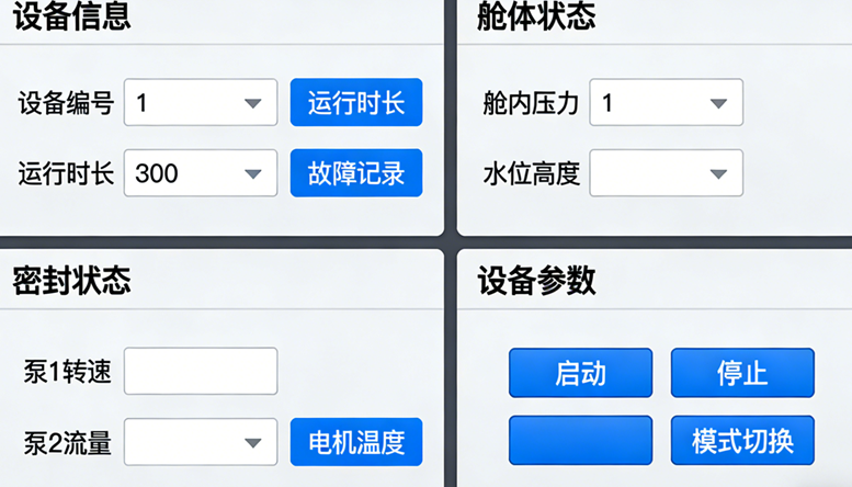 全硬件接入后,逐功能区测试数据采集与指令控制,深度、温度、球阀开度等参数实时刷新,照明、摄像、电机、阀门等设备响应及时,控制指令执行无延迟,视频画面清晰传输,满足水下泵组远程监控实际作业要求。